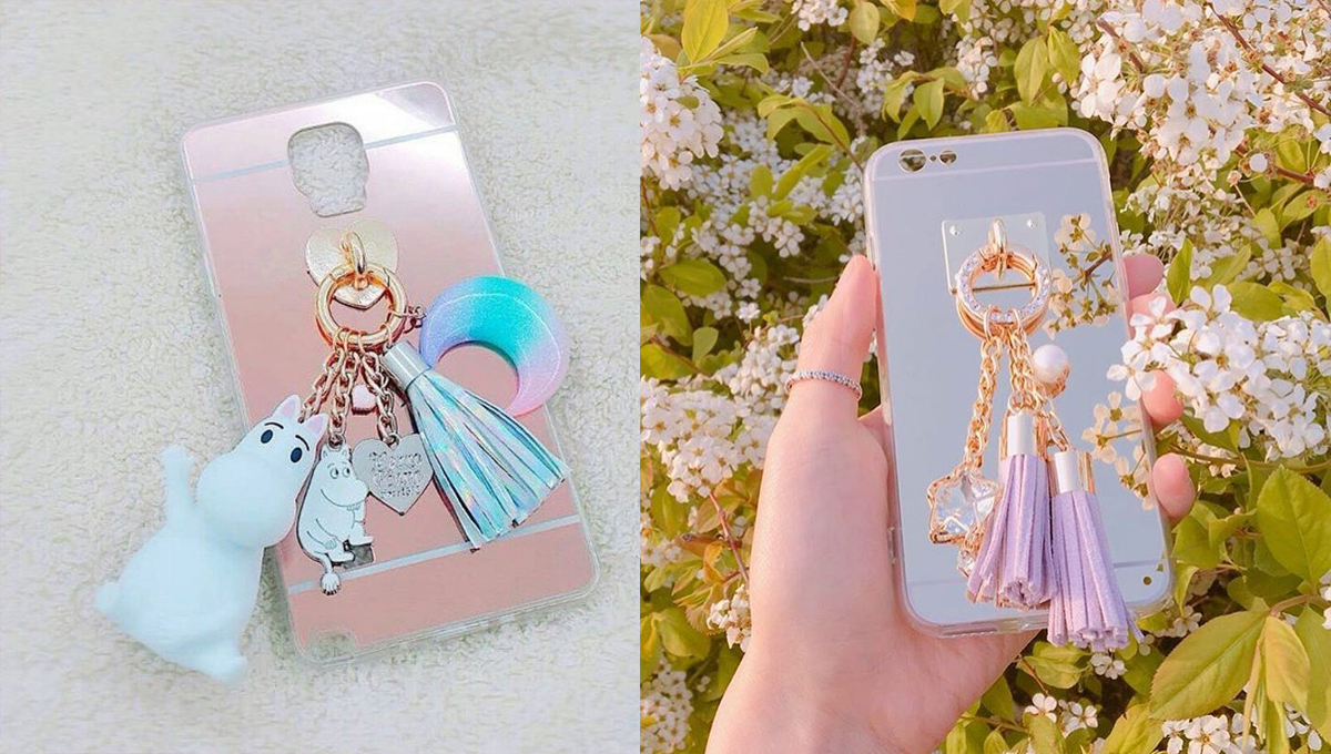 有別於以往將手機繩穿過手機特殊孔的方式(少女們多年前的回憶啊~),現在的吊飾都是直接在背殼上做扣環,再另外掛上許多可愛的小吊飾,不只可以一次各種風格混搭,也不會再晃來晃去卡卡手啦!