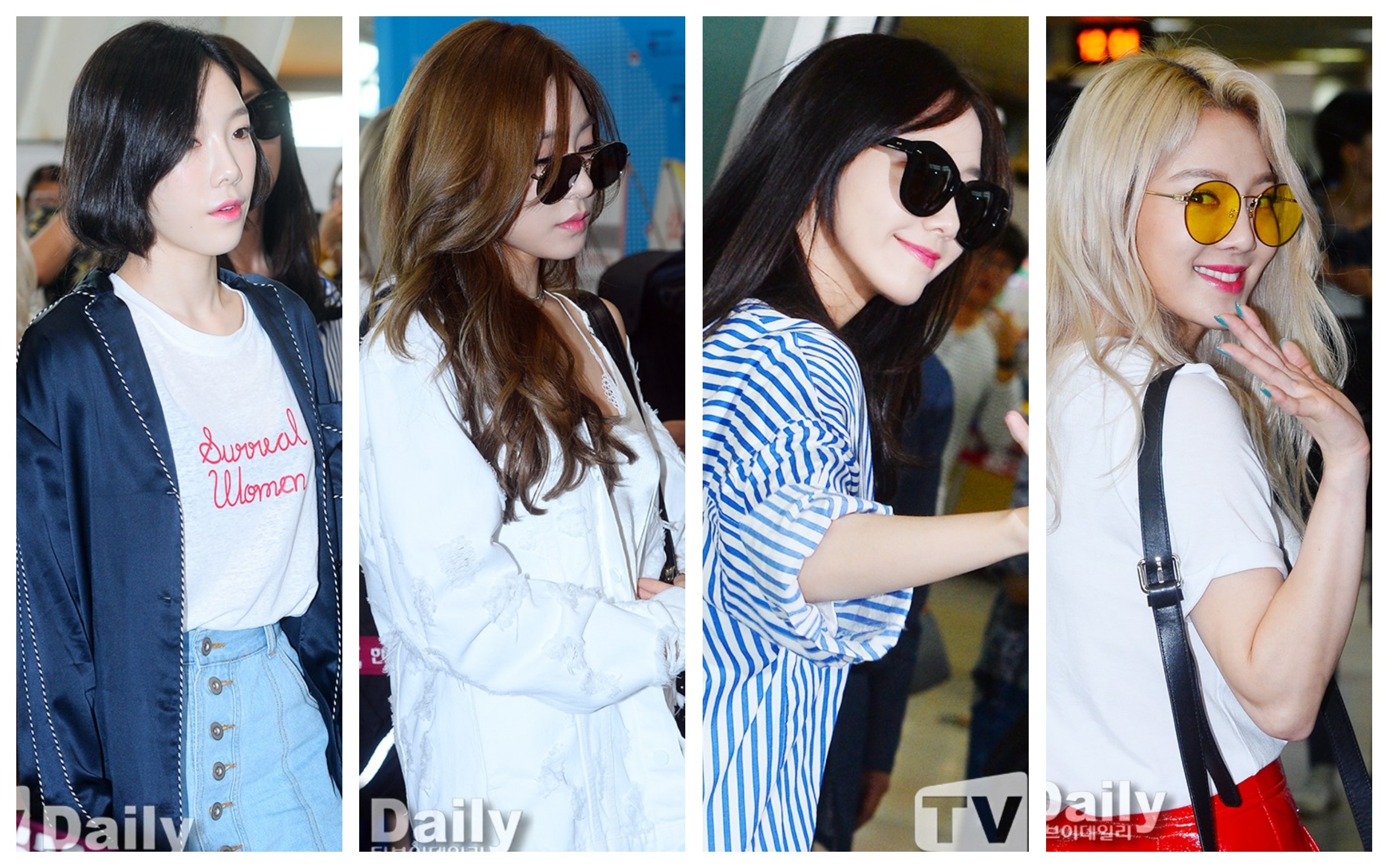 SM娛樂近期在濟州島舉行WorkShop的活動,19日旗下偶像藝人們現身金浦機場,少女時代、SHINee、EXO等多名成員齊出現好似星光大道,近距離歌手也讓歌迷們直呼太、幸、運、啦!其中非常受到關注的就是帶著新短黑髮造型亮相的泰妍啦!不只我們的小鬼隊長,潤娥、Tiffany、秀英、孝淵久未合體活動,開心的跟歌迷們揮手打招呼,看得出來心情好像很不錯唷!