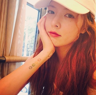 泫雅的私服照常常都戴著棒球帽上鏡,而這時候的她通常都不會畫上太濃烈的妝五官卻依舊立體感十足,這點當然因為泫雅很美是沒錯啦,但是棒球帽的帽簷在臉上製造的陰影效果也是神助攻!