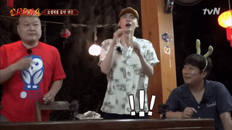 但因為是團體戰,圭賢、安宰賢可沒有因為自己答對了就置身事外,他們紛紛仔細聽音樂要來拯救隊友!所以《花樣男子》音樂一下安宰賢立刻興奮的給提示,大喊:「老婆啊~」讓半固定成員具惠善,在第4季又現身了!(笑倒)