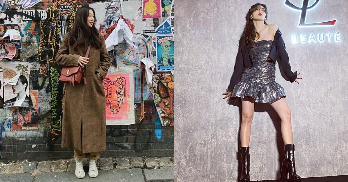 妞編輯建議如果有同樣需求的妞妞們(到底誰會遇到這個狀況XD),可以像韓國女演員鄭麗媛一樣,先穿長輩一定不討厭的格紋大衣外套遮住內裡的衣服,再背一款簡單好看的斜背包。脫下大衣之後,可以學炫雅穿上閃亮的平口小禮服搭配高跟靴,再套上一件黑色的短版外套,這樣穿不管是跑趴、去夜店、或是表演(?)絕對吸睛!