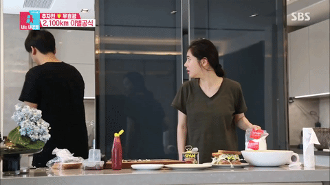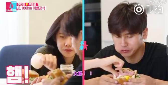 不過,這甜蜜的氣氛一下就被秋瓷炫打破了,因為要于曉光要拍新戲,體重必須嚴、格、控、管!但這個三明治熱量似乎看起來不低呢…裡面不只有滿滿的午餐肉,于曉光還加了白糖讓口感吃起來更好…(這一定胖死啊!)秋瓷炫忍不住拿出體重計,並規定于曉光體重在83公斤以內才可以享用三明治!(天噢,美食當前還要量體重,秋瓷炫真的太狠啦!)