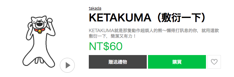 《KETAKUMA(敷衍一下)》這次依然收錄了不少很適合刷存在感的貼圖,每一張都會讓人看了好氣又好笑,(怒點很低XD)如果妞妞們平常的興趣是惹怒朋友,那麼這款貼圖絕對也是你的最佳首選啦!