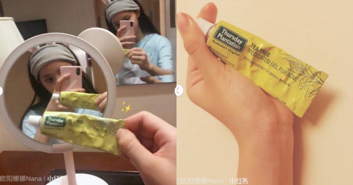 這款痘痘凝膠是娜娜前陣子去澳洲拍戲帶回來的,聞起來有濃濃的茶樹精油味,因為成分溫和,不可能一夜就讓痘痘消失,娜娜分享自己的用法,在早晚洗臉後,使用棉花棒沾取一點點的用量塗在痘痘的地方,再搭配補水保濕的保養。