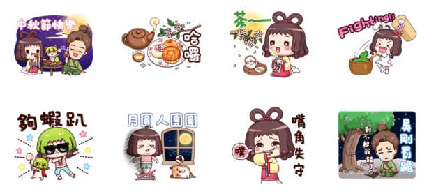 而LINE這次推出的中秋活動不只有期間限定貼圖而已,還有趣味的「刮刮樂中秋」活動,只要購買指定貼圖就能獲得一張可能隱藏大禮的刮刮卡!是個買貼圖順便試手氣的概念呢XD那麼就先讓手機小姐介紹10款限定貼圖,再來了解刮刮樂中秋的玩法吧!