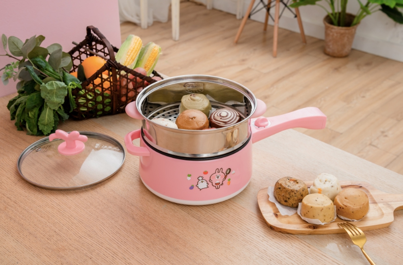 內層不沾鍋鋁合金,附有304不鏽鋼蒸鍋,雙層防燙設計,防乾燒、過熱保護,單鍵開關,可調溫旋鈕(不敢開瓦斯的妞妞也能下廚!),蒸煮煎一鍋多用,2公升大容量,超級實用,很適合單身居住的妞妞!限量4000個。
