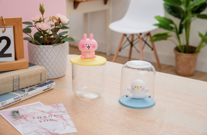 共有粉紅兔兔(限量5500個)跟P助(限量5000個)兩款圖案,造型立體公仔設計,可以當作水杯外,也適合收納棉花棒、化妝棉甚至美妝蛋等,一物多用途。