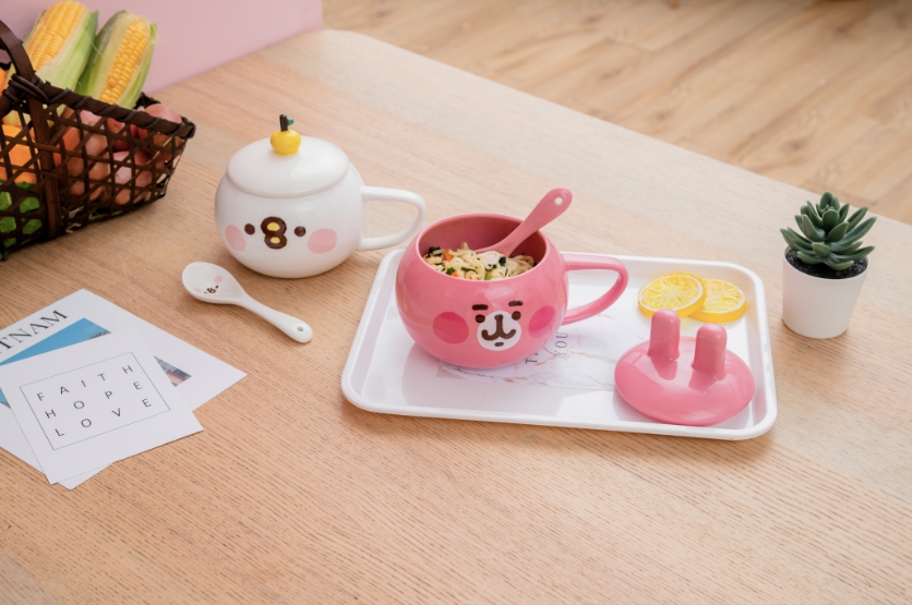 立體造型暖暖陶瓷杯,共有粉紅兔兔(限量6000個)及P助(限量5000個)兩款,600ml大容量,可以用來當水杯、湯杯,還附有可愛的表情陶瓷湯匙、造型杯蓋,冬天喝熱飲、熱湯時,心情會超療癒啊!