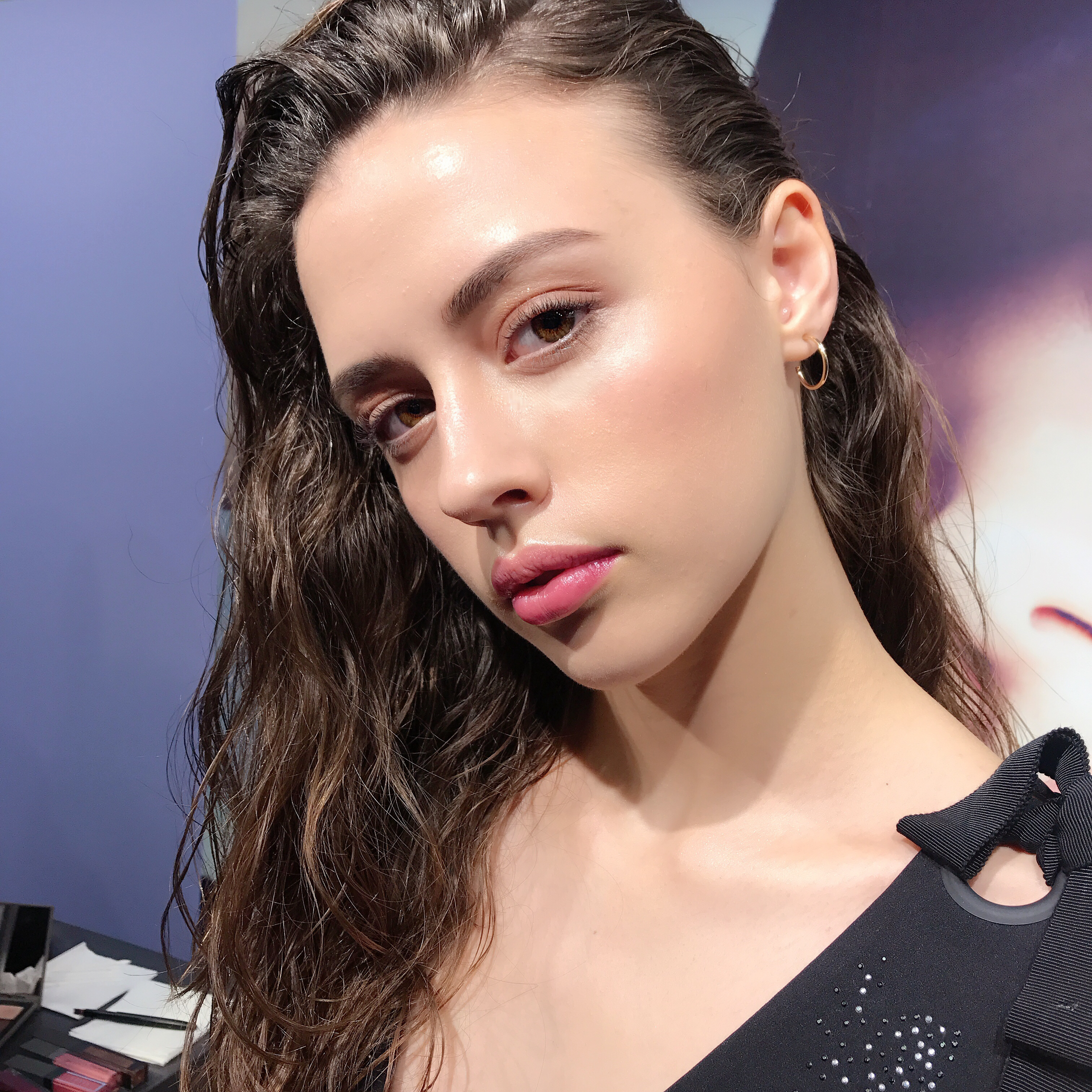 想要創造今年流行的自然霧光唇又怕質地過於乾不想要用霧面唇膏,可以選擇唇蜜質地的唇彩品(老師用的是THREE詩情霧光唇漾),擦完一層可用吸油面紙輕壓將多餘的油光去掉,就會呈現自然霧光唇彩。