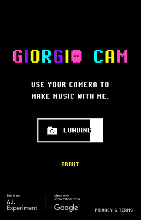 遊戲畫面是復古的像素風,點按「LET’s GO!」進入遊戲後,A.I.就會開始跟你說話,背景則會響起義大利搖滾、電子音樂作曲家Giorgio Moroder的音樂。這時候只要拍下照片,A.I.辨識出照片的物品之後,就會創作出兩段歌詞,以「說唱」的方式秀給你聽。