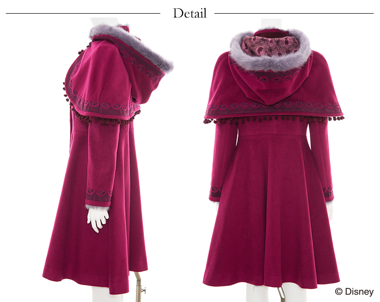 除了毛毛滾邊之外,整個袖口跟披肩都有精緻的刺繡,披肩下擺還有流蘇的裝飾,非常可愛,內裡還有艾莎跟安娜的印花圖案喔!