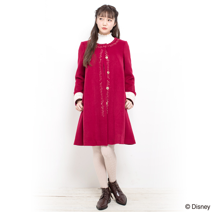 最後這件是以《美女與野獸》中,貝兒公主跟野獸在打雪仗時穿的披風(沒錯,就是艾瑪華森身上穿的那件!)為原型所設計,重新打造而成的聖誕節色調大衣與披肩SET。