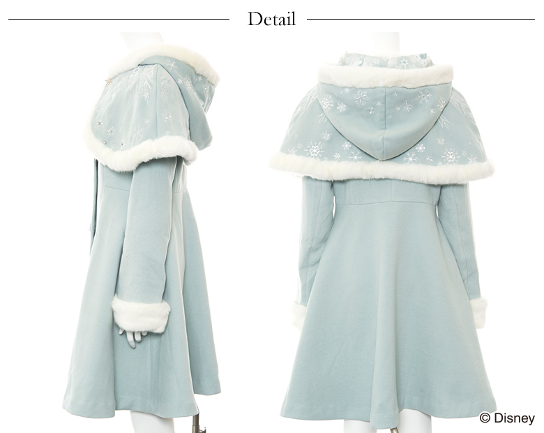 披肩上有滿滿的雪花刺繡,連內裡也都是同色系的雪花圖案,很有艾莎公主低調卻不失華麗的風采。