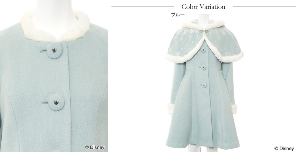 覺得紅色太鮮豔,另一款冰藍色的艾莎大衣也很有冬天的氛圍,淡雅溫柔的設計,有種雪天使的感覺。