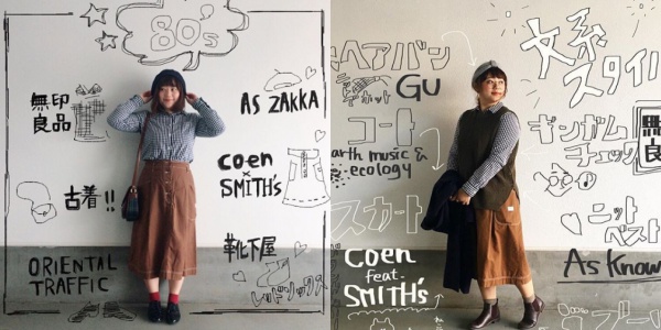 這個女生的穿搭偏向有點文藝、多層次的風格,最可愛的是她的穿搭照片不樣一般直接Tag品牌名稱,而是會以手繪感的文字塗鴉在照片上,非常可愛!