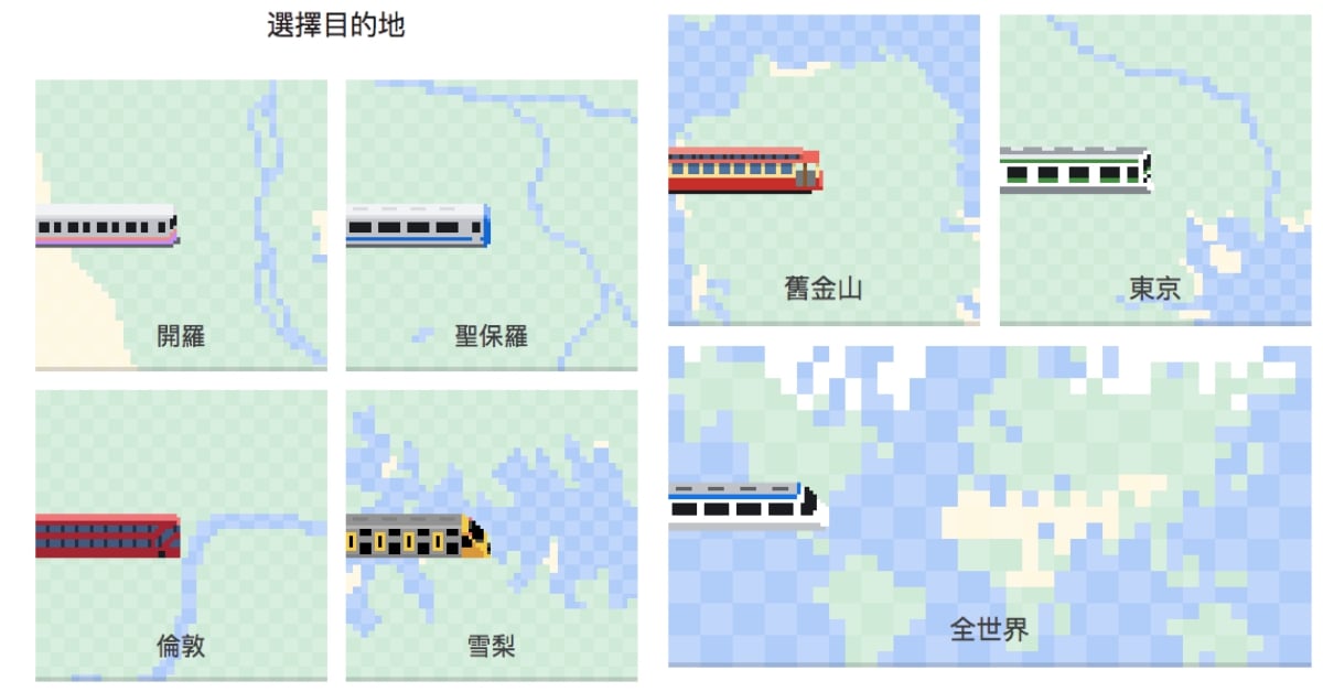 Google Map今年推出的愚人節小遊戲將貪食蛇與世界各地地圖做結合,風格復古又可愛。在遊戲中貪食蛇將變成世界各地的交通工具,玩家可以選擇前往開羅、聖保羅、倫敦等地,或是在全世界地圖中旅行。