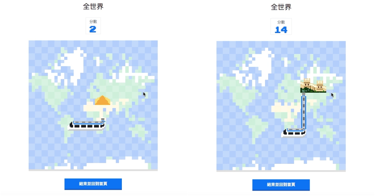 如果選擇的是全世界地圖,則可以看到各種不同的名勝景點,例如埃及的金字塔、中國的長城等等,在玩的時候真的有環遊世界的感覺呢!這次的愚人節彩蛋遊戲預計開放一週,有興趣的妞妞趕快打開你的Google Map玩一下交通工具版的貪食蛇吧!