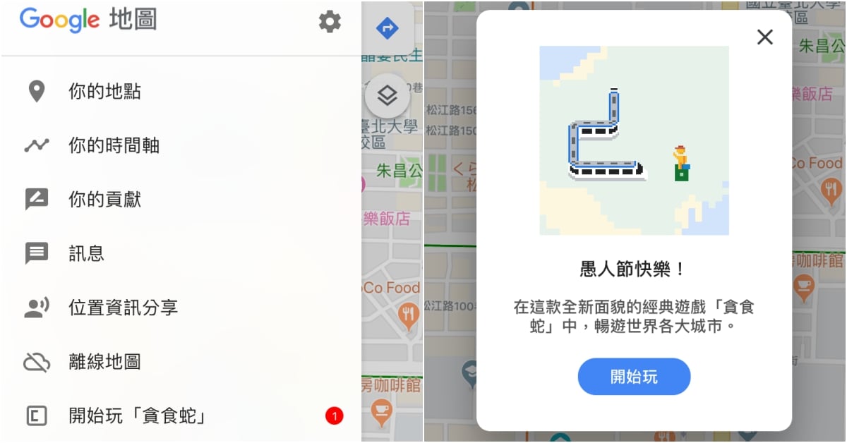 Google Maps的愚人節彩蛋來啦!超懷舊「貪食蛇遊戲」開著交通工具遊覽世界