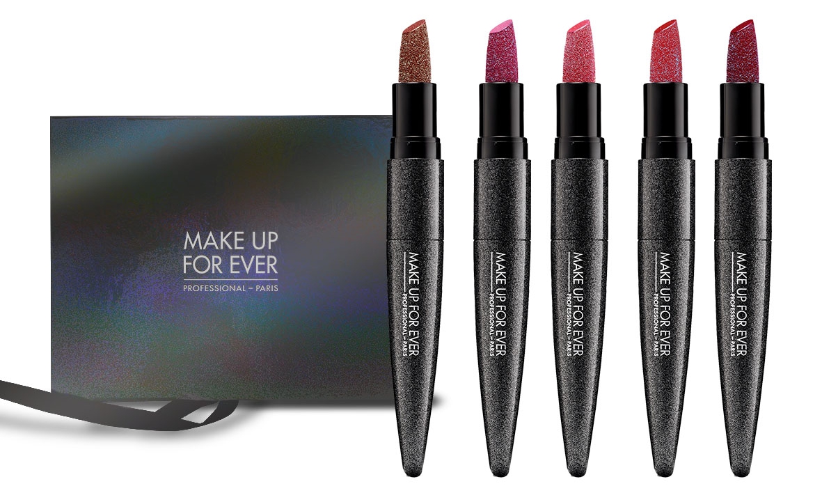 聖誕節慶少不了閃耀的配件,妝容上也要來點Bling Bling才應景啊!今年MAKE UP FOR EVER 以「銀河星光」為主題,將「ROCK 真我唇膏筆」化身成星光版,打造一系列星光閃耀的限定商品。除了針對聖誕推出 5 款全新色號,唇膏體還鑲嵌多顆小晶鑽,顏色飽和帶有珠光的閃耀光澤。