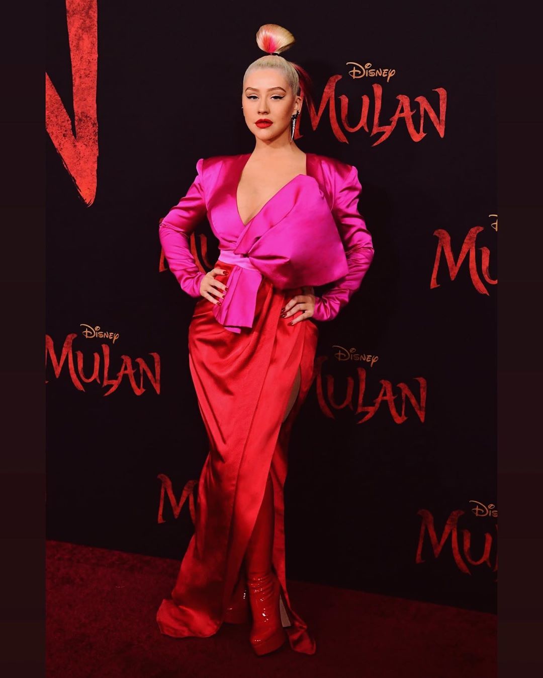 同時為了切合《花木蘭》的中國風,克莉絲汀的服裝完全沒有在馬虎!在秀上表演時身穿如古裝般的長袍,上面還有許多木蘭花的圖騰,搭配高高紮起的馬尾,完全是音樂界的女英雄啊~