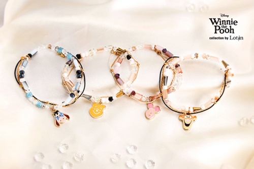 這次的手鍊跟第一波一樣都是很有層次的雙鍊設計,搭配的水晶也呼應角色所屬的代表色,不管是跳跳虎的橘黃色、屹耳的灰藍色、小豬的粉紅色都有,跟第一波比較不一樣的是這次水晶練的從圓珠串換成長型珠串,整體也更優雅,推薦給喜歡小熊維尼的妞妞們囉~