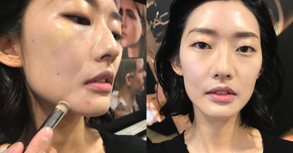 模特兒實際使用的效果真的超~燒!原本眼下的黑眼圈、嘴周暗沈和下巴痘痘,經過調色遮瑕後,後續只要再用一點點的粉底,整張臉立刻變得超無瑕!!近看也不會覺得粉感很重,真的大推!