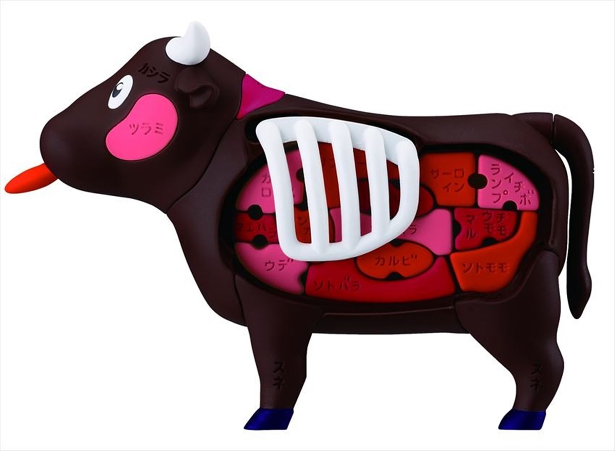 每次去吃燒肉是否對於每個部位都傻傻分不清楚?這套首次登場的立體拼圖,以空洞的牛身體為主,將肉和內臟等37個部位放到正確的位置。