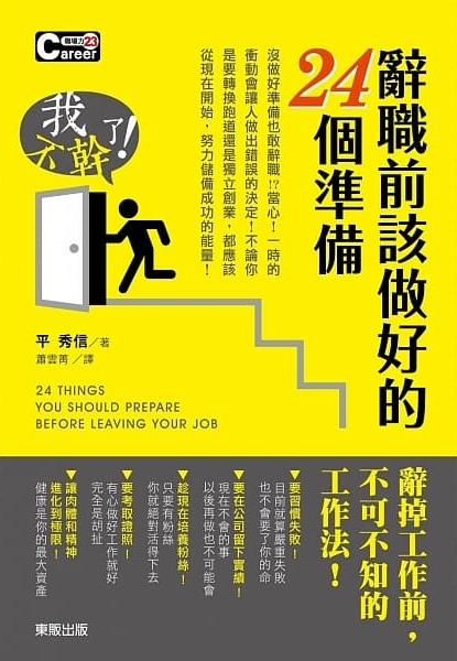 總是對怎麼遞辭呈或是要不要辭職感到猶豫嗎?日本作家平秀信在《離職前該做好的24個準備》一書中提到了在提離職前應該要顧及的面向。除了公司方面要先安頓,自己的心理準備與都有相關的介紹,不過這本書比較偏向建議讀者「創業」前要如何準備,不管是培養自己的人脈還是學會掌管金錢流向,這些方法相信對想成為老闆的妞妞來說應該都受用無窮!