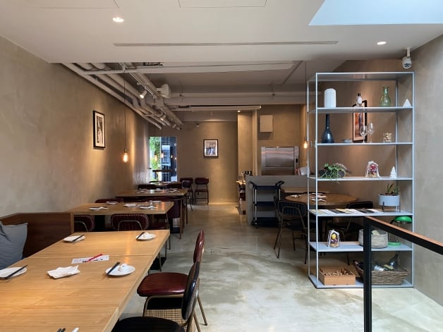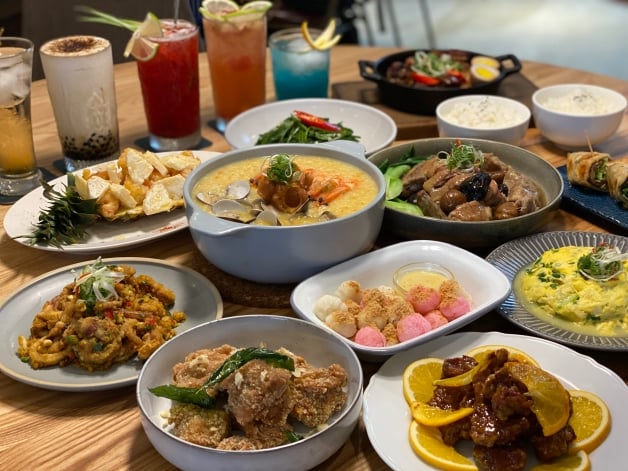 做茶菜整棟建築是老宅改建,店門口走一個潔白簡約的風格,並用綠色植栽點綴,室內裝潢採歐式設計,青灰色的水泥牆面、搭配木質調的桌椅,再加上保留原先屋主的老物件,當暖色系的燈光灑下來時,給人一種溫馨又復古的氛圍,一二樓為用餐區和酒吧,無論是一個人、情侶、閨蜜還是小家庭想要聚餐或小酌都很適合,堪稱是「新中餐」的時尚台菜餐館!