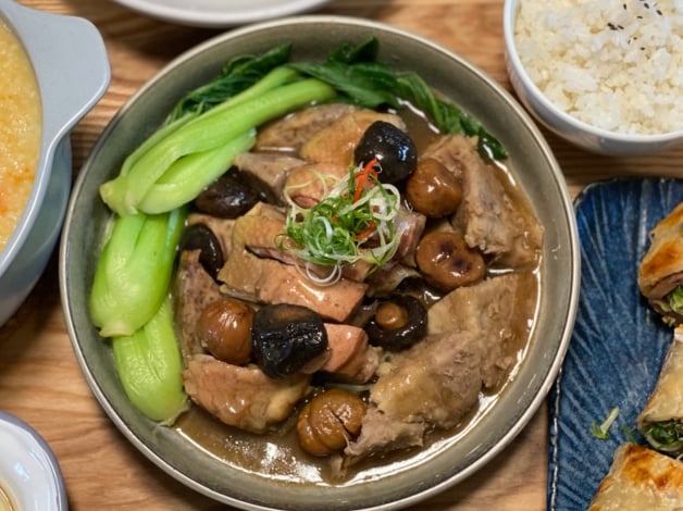 超下飯的「毛爺爺的紅燒肉」,使用肥瘦分佈均勻的五花肉,加入一點點的紹興酒,再加上超入味滷蛋,聞起來不僅帶點滷汁香,還有淡淡的酒香,吃起來不油膩,口感又軟嫩多汁,必須一口白飯一口肉;「媽媽芋栗燒雞」以秘方醬汁與中藥材浸泡新鮮栗子,經過24小時醃製後,再與整支雞大腿和大甲直送的芋頭一起燉煮,入口即化,讓人一口接一口!