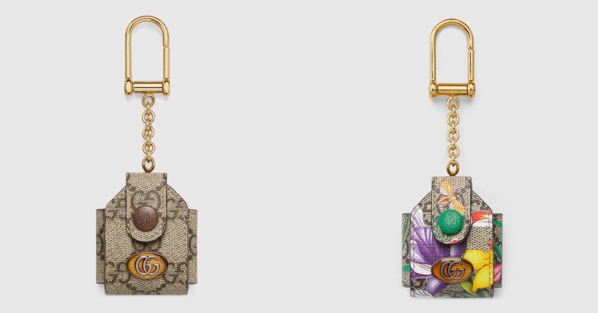 Gucci Ophidia系列推出了經典老花,以及復古Flora花卉樣式的AirPods收納包,同樣是由GG Supreme帆布打造,在收納包上會有專屬的橢圓琺瑯Double G標誌,還搭配上鑰匙扣的設計,可以掛在包包、腰帶上(捨不得亂掛哈哈哈哈),非常可愛又經典的款式喔!