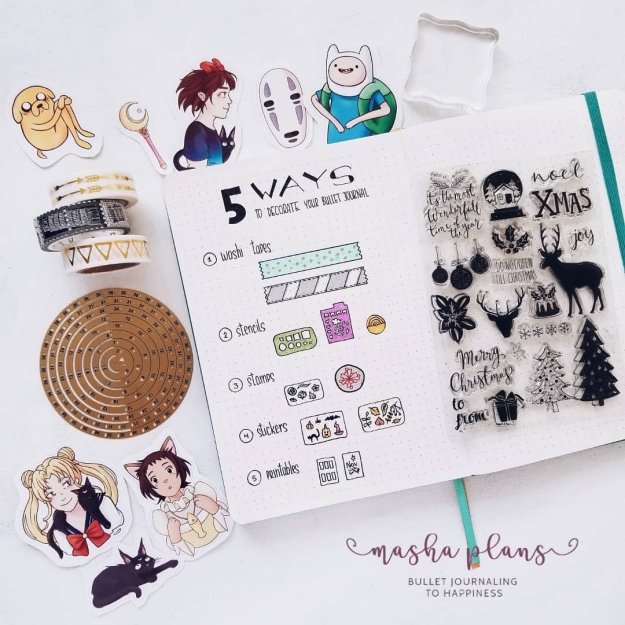 如果在忙碌的一天後,實在沒有多餘的力氣裝飾手帳了,其實也有偷吃步!拿出手邊的紙膠帶、印章或貼紙等素材,貼好蓋滿也是一種方法!