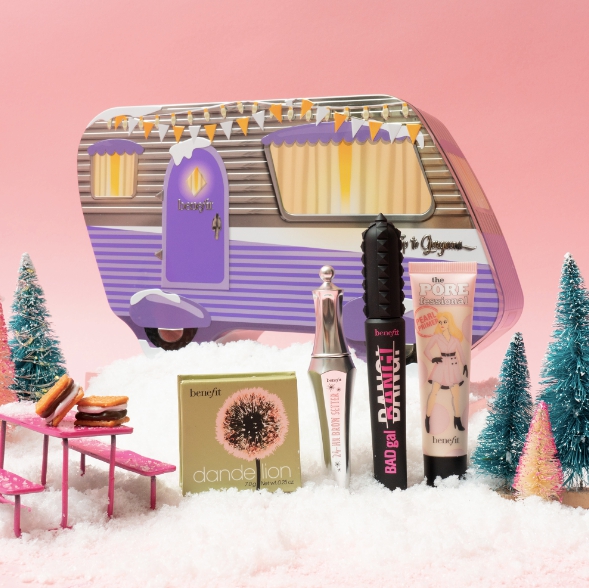 今年benefit週年慶以露營車為主題,將經典熱賣商品都以可愛的露營車禮盒裝著,這一組包含嘖嘖稱齊激光毛孔隱形露、蒲公英蜜粉盒、星際真霸!壞女孩捲翻天睫毛膏、24小時眉彩定型膠,從底妝、睫毛到眉彩都能一次擁有,約5折的價格超級划算!