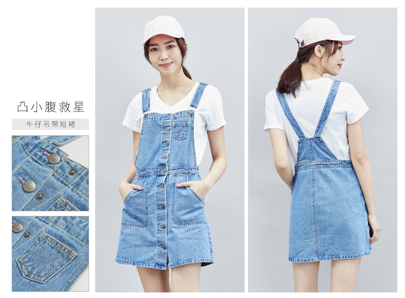 連身吊帶系列不管是吊帶褲或吊帶裙,寬下襬或傘擺設計都是隱藏肉肉的Point!因此,根據自己喜歡的色系或是刷破設計做選擇,就能悄悄地隱藏小腹線條,打造纖腰視覺。而短裙除了能遮掩小腹之外,A字裙擺的設計,也能讓肉肉的大腿獲得修飾,讓這項單品成為女孩穿搭中最具有修飾效果的Item!