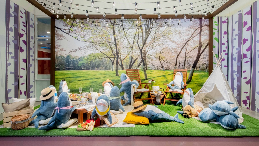 新店店的打卡場景帶有非常清涼的感覺,妞妞們想跟鯊鯊一起游泳的夢完全可以實現啦~這座鯊鯊游泳池寬度195公分、高度1