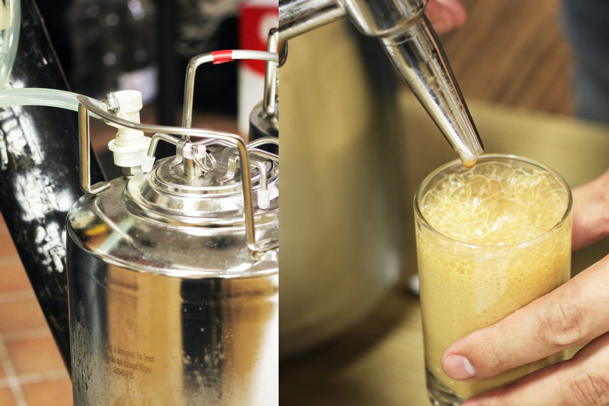 閒聊間Mars也說到,製作方式的優化加上好用的輔助道具,能讓製作工時從原本的四天壓縮到兩天。如何能增加氣體在液體中的溶解率、更快達到綿密氣泡帶來的豐富口感?「氣泡石」就是一個普遍易取得的小道具──它最早使用於啤酒的強制碳酸化,能將CO2氣體切成很細微的泡沫,讓氣體更容易被液體吸收、融入酒體,得以減少融合後的靜置時間,在維持一定的品質下有效縮短製作流程。