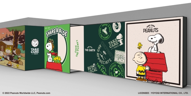 「PEANUTS™花生漫畫關愛巡迴展」特別在入口處放上巨型的「史努比」和「胡士托」充氣公仔大型拱門,可見史努比懶懶地躺著與胡士托對視微笑,背板處「Take Care」也呼應這次的「關愛」主題,同時展區還有「光影」、「玩偶抱抱區」、「關愛地球」和「關愛彼此」等區域!