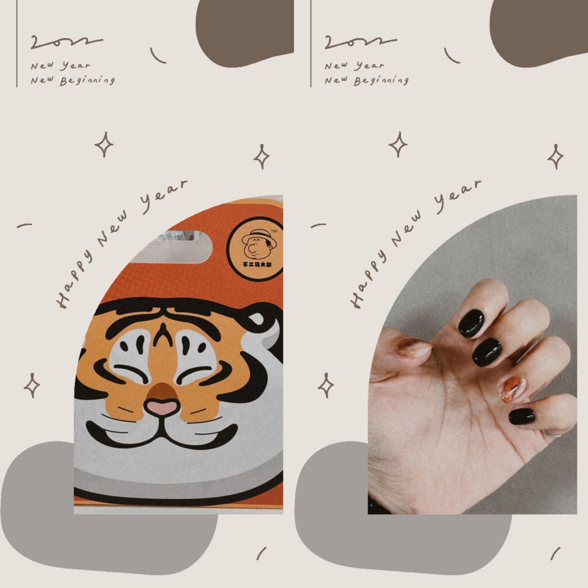 「Happy 2022」這款濾鏡走大地色韓系簡約風,搭配「2022 New Year New Beginnig」(新年新開始)「Happy New Year」字樣,拍照區域只留一小塊,除了拍日常之外,也很適合曬美甲呢。