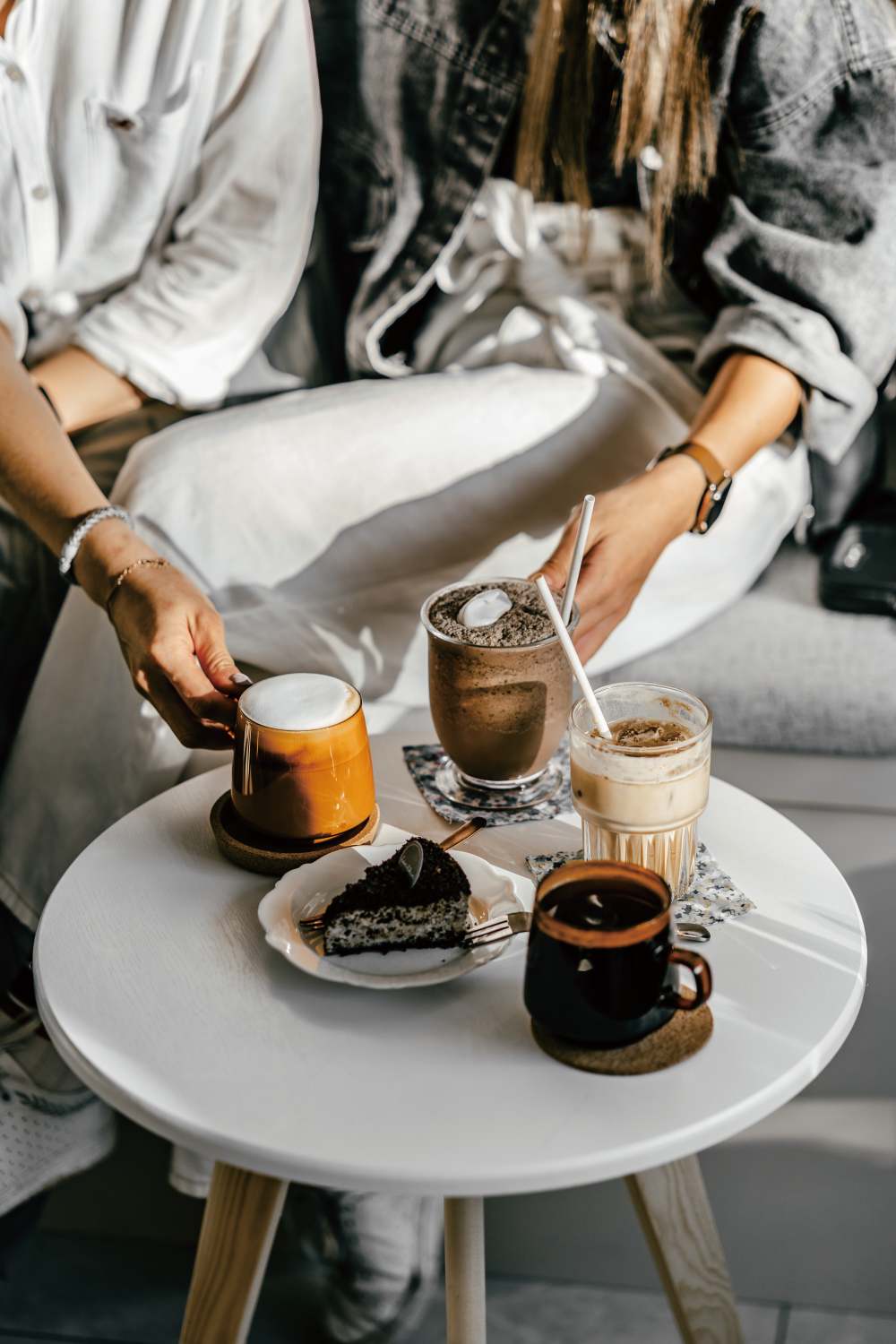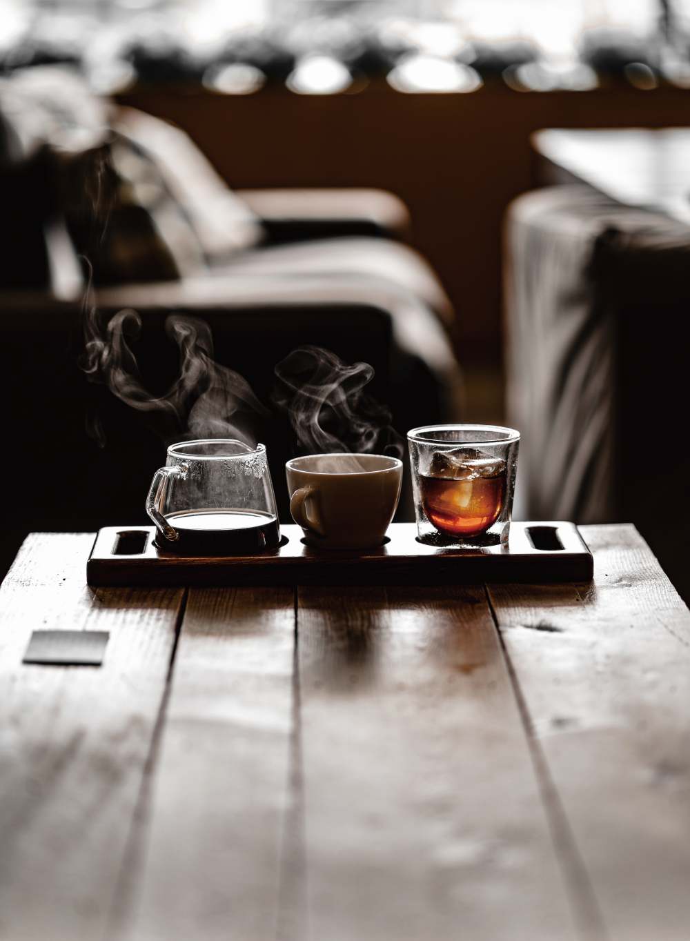 建議選擇在⽩天光線明亮的窗邊,最好採⽤⾃然光的側光拍攝咖啡。盡量避免物體、⼈物背對光線,這樣視覺主體才不會呈現黑漆漆的狀態。若是在夜晚拍攝,或是燈光較為昏暗的咖啡館,在不能打閃光燈的情況下,可以利⽤僅有的光線去呈現空間的「氛圍感」,但個人認為這樣不太適合拍攝產品與⼈像。