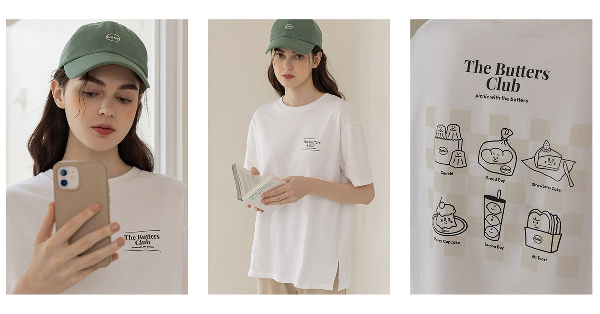 首波商品以兩款奶油家族角色 TEE 為主,第一款「奶油一起野餐印花 tee」一共有 3 個顏色,每件顏色所搭配的角色圖案都不相同,讓人不禁想一次包色擁有!另一款「MIT 奶油小時髦棋盤格印花 tee」為 Oversize 寬鬆版型,男女皆可共穿,衣服背面有奶油家族多位角色集結的棋盤格圖案,療癒指數破表!衣服下襬有做小開衩設計穿起來更修身,好想趕快拉著閨蜜或另一半一起穿上出遊踏青!