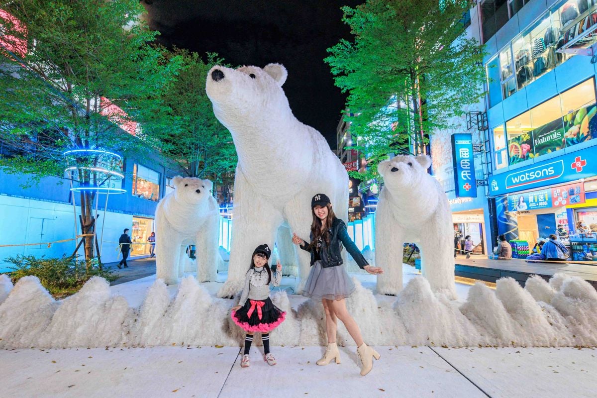 今年歡樂耶誕城將環境議題結合府中美學內涵,並融入新北AI數據轉換出獨一無二的聲光影像,身在冰晶閃耀的迷人裝置中,帶大家跟著國家地理的腳步探索極地風景!一走進府中商圈就彷彿踏進了極地,在「北極熊」、「冰山」、「雪國耶誕」及「北極海」等場景的環繞下,不僅能感受急凍快感,也能親身體會極地生態,並從中認識保護地球自然環境的重要性。