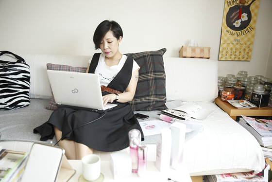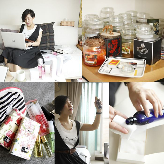 在家寫稿時很重視氣氛及療癒,包括溫度跟燈光等等,得將一切準備妥當才可以開始工作,而且太過專心其實不太好,要適時放下電腦喝喝茶、擦擦護手霜及按摩一下頭皮或大腿之類,身邊的保養小物也都要香香的,稿子就會寫得更好!