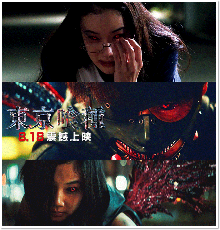 窪田正孝所飾演的金木研,從一個普通學生,歷經被喰種襲擊,存活之後卻變成半人半喰種的怪物。找不到自己在世界的定位,難以接受事實的痛苦情緒,由窪田和萩原導演的運鏡完美配合,呈現了漫畫中的張力。除了內心的描寫,電影中打鬥和吃人肉的戲份,也是畫面處理和演技上的一大挑戰!