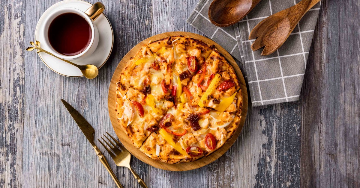 美威鮭魚首次推出派對氣氛濃厚、適合共享分食的「瑪格麗特鮭魚披薩」,其蓬鬆水潤的手拍餅皮採用未經漂白的小麥麵粉揉製而成、自然發酵,鋪上滿滿鮮甜滑順的鮭魚與油漬番茄、紅黃椒、洋蔥等多彩鮮蔬,拌上滿溢義式香料風情的特製番茄醬汁,並融合馬札瑞拉金黃起司,高溫烤出焦香酥脆的披薩邊緣,內層餅皮充滿麵香、鬆軟Q彈,大口咬下,香醇酸甜的義式番茄醬汁襯出鮮蔬清甜,以及鮭魚的綿密脂香,更蘊含牽絲起司交織而成的濃厚氣息。