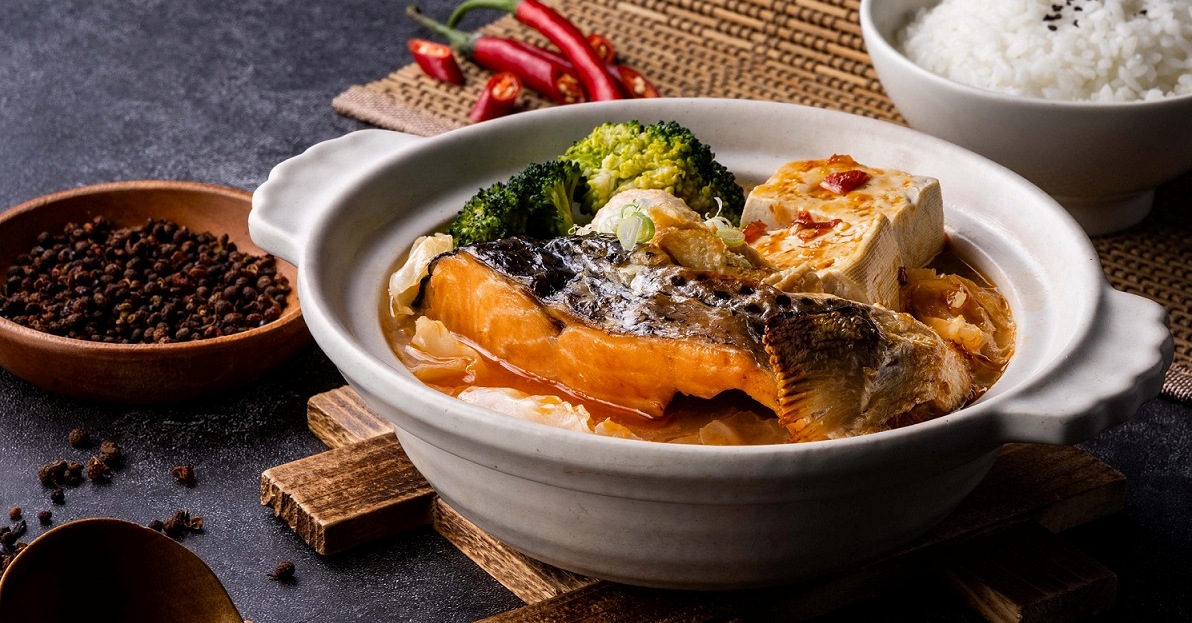 看準國人愛鍋特性,獻上以美威明星熱銷產品「美威精選鮭魚菲力-川香剁椒口味」入饌升級的「川香椒麻鮭魚下巴鍋」(勤美綠園道店NT.308),不惜成本將鮮厚肥美的鮭魚下巴、鮭魚干貝海鮮丸等鮮美食材,佐主廚秘製川香剁椒醬,融合多種中藥熬煮而成的香濃大骨湯底,讓鮮、香、麻、辣的多重滋味喚醒您冬天的味蕾。