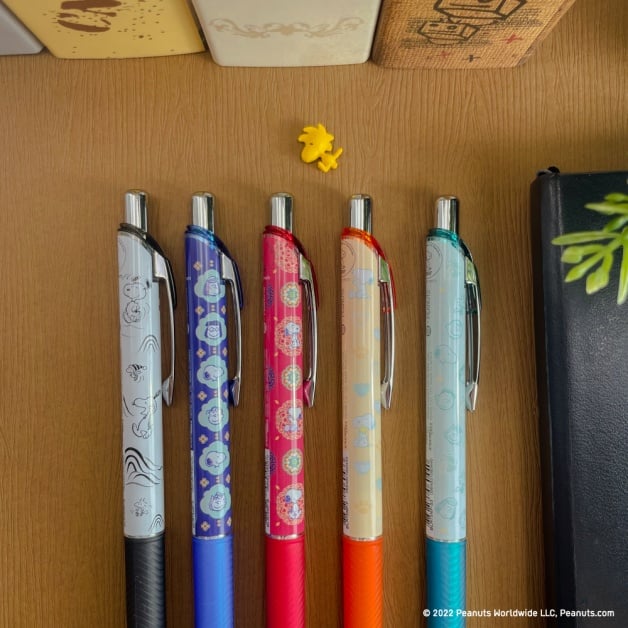 ENERGEL極速鋼珠筆」共有「元 黃公望 富春山居圖」、「明 景泰 掐絲琺瑯番蓮紋盒」和「清 乾隆 霽青描金游魚轉心瓶」等五款,妞編輯最愛霽青描金游魚轉心瓶款,史努比經典角色全躍上外觀,該鋼珠筆的特性不僅滑順,墨色鮮明之外,更速乾!