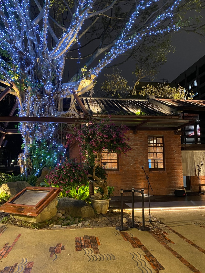 12/12起至明年一月底,每天晚間規劃有聖誕樹點燈活動。超過三層樓高的大樹,妝點上璀璨的燈飾,搭配園區內獨特的日式官舍屋宅、樹屋共生的紅磚牆及日式庭園造景,夜晚的榕錦時光,另有一種浪漫懷舊的獨特風情。讓園區日與夜都有不一樣的節慶氛圍。