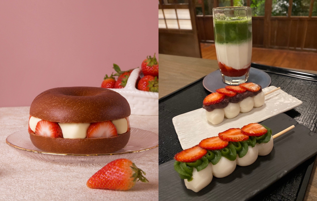 【京町 山本屋】於12/13~2/14期間限定販售季節商品草莓糰子以及草莓抹茶拿鐵,草莓糰子共有草莓紅豆糰子及草莓抹茶糰子兩種口味。