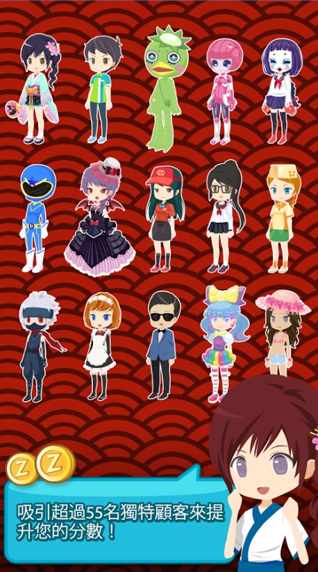 等級上升之後就能解鎖角色,讓更多長相可愛的客人來店裡用餐喔~