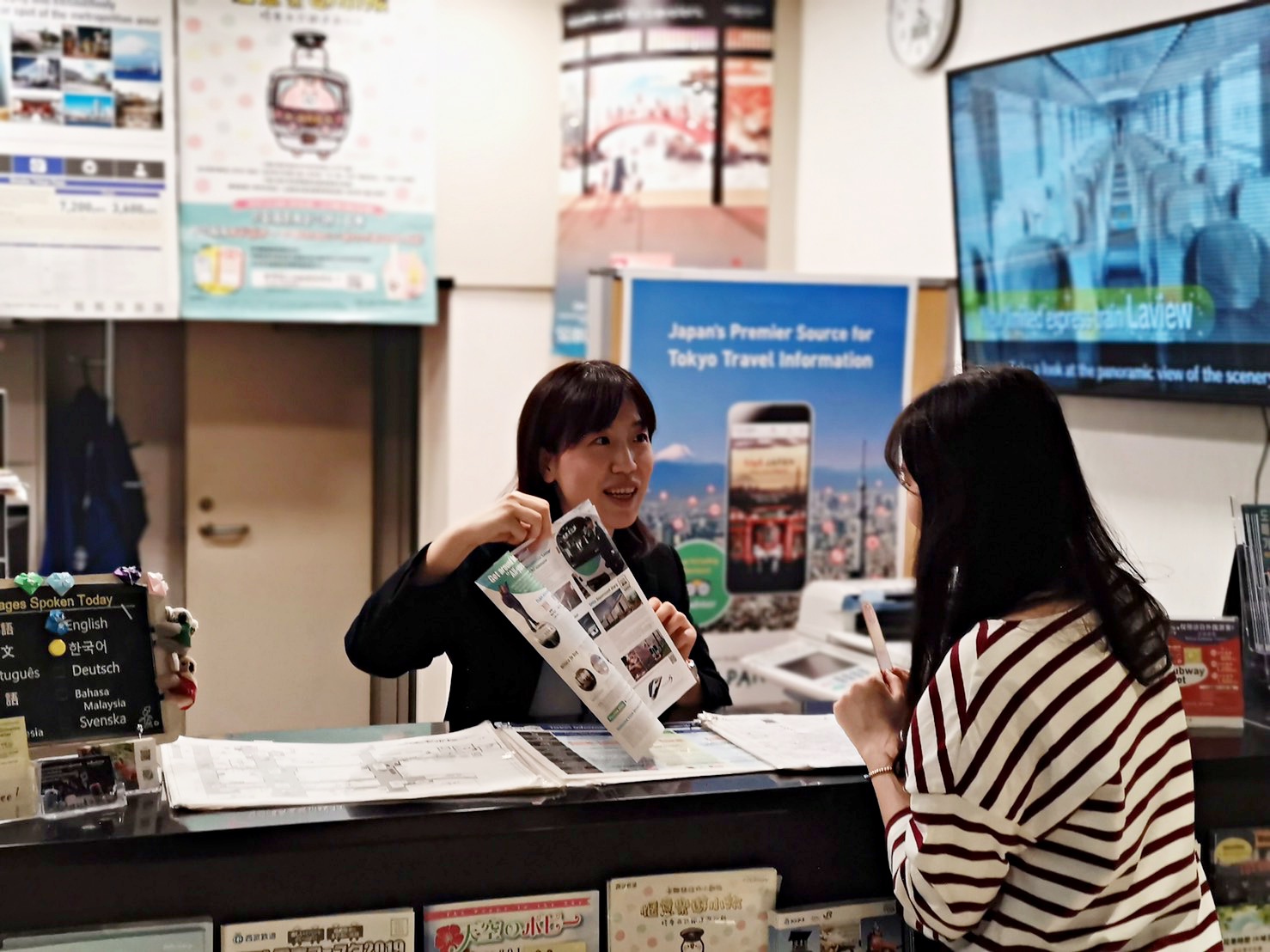 西武池袋旅遊服務中心(TIC池袋)的營業時間是從早上8點開始,因此我大約會在7點半前就抵達服務中心,先整理環境、補充資料等,做開門前的準備工作。8點時間一到就開始正式對外營業,到下午15點為止,除了提供觀光諮詢外,同時也販售各種針對外籍遊客設計的優惠乘車券,例如:「西武川越1日券」、「SEIBU 1Day Pass」、「SEIBU 1Day Pass + Nagatoro(長瀞)」、「東京地鐵通票」和「Skyliner超值車票」。15點到18點會停止販售車票,但是仍會繼續提供觀光諮詢。平時也有庶務性的工作,像是做工讀生的出缺勤管理,以及售票統計與網路預約確認或是翻譯作業等等。